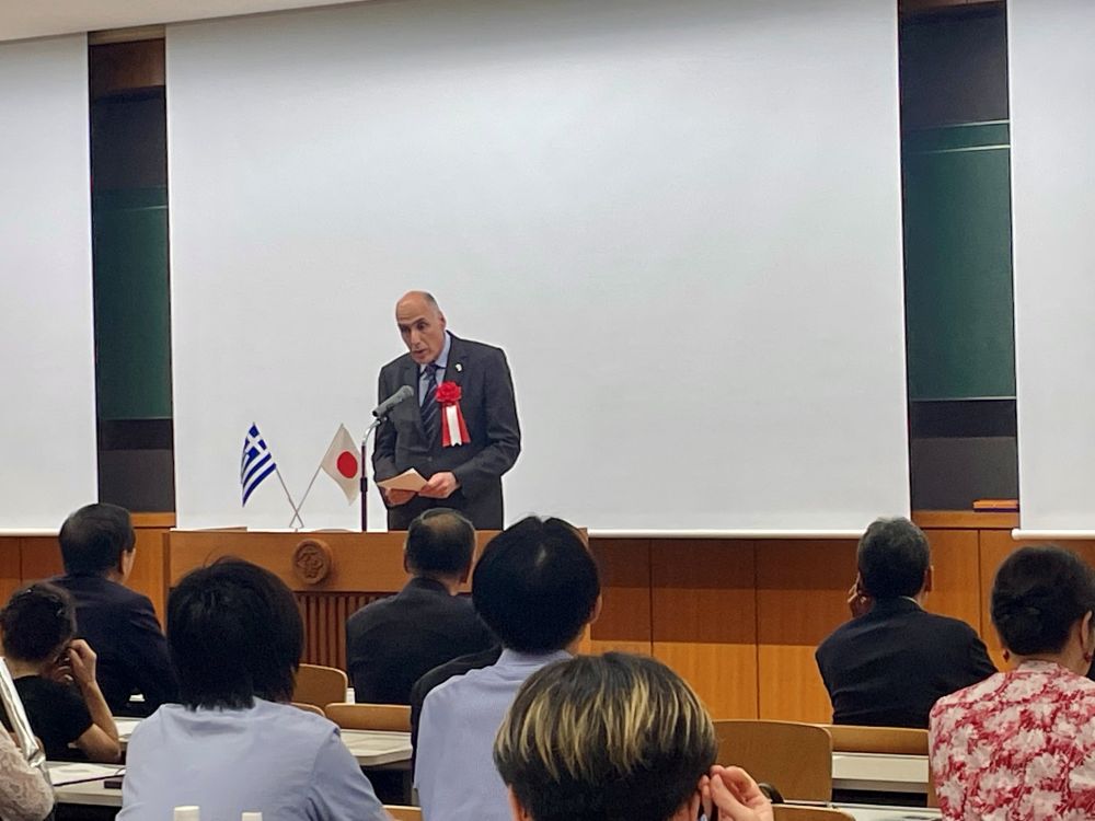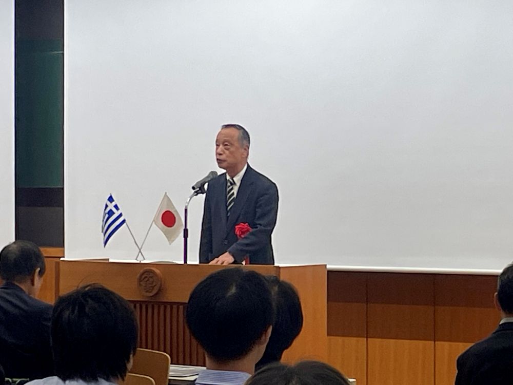駐日ギリシャ大使のご挨拶や、本学の市川博学長の挨拶もありました。