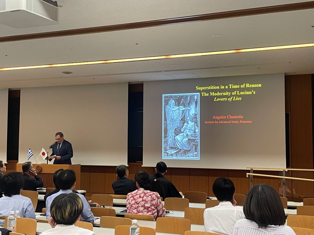 第一部では、アンゲロス・ハニオティス先生(プリンストン高等研究所教授)による基調講演「理性の時代の迷信とは: ルキアノス『嘘好き』の現代性」が行われました。