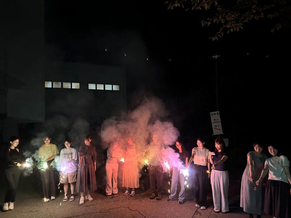朝から夕方まで、授業だと1限から5限に相当する時間を卒業論文準備報告にあてて、学期開始後すぐに卒業論文執筆モードになるように準備をしました。夕方以降は、バーベキューや花火などをして親交を深めました。