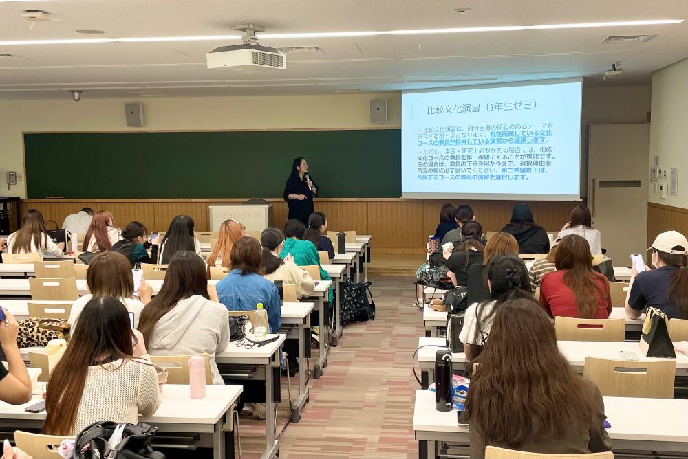 2025年10月6日の昼休み、比較文化演習(3年ゼミ)選択ガイダンスが開催されました。